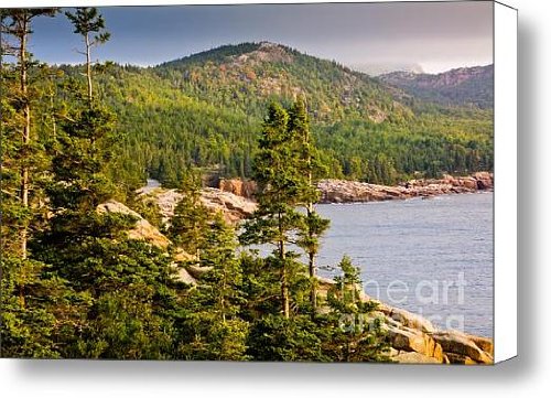 Acadian Coast in Summer Canvas Print / Canvas Art - Artist Susan Cole Kelly . This is a beautiful stretched-canvas print wrapped on 1.5" thick stretcher bars. The print is professionally printed, assembled, and shipped within 2 - 3 business days from our production facility in North Carolina and arrives ready-to-hang on your wall. Fine Art America is home to more than 75,000 artists from all over the world who entrust us to fulfill their print orders online. We offer a 30-day money-back guarantee on every print that we sell and look forward to helping you select your next piece. Keywords: Acadia National Park Canvas Print, Bay Canvas Print, Fine Art Canvas Print, Forest Canvas Print, Maine Canvas Print
