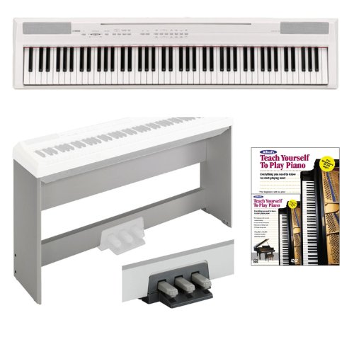 Yamaha P Series P105B 88-Key Digital Piano in White + Digital Piano Stand, 3 Pedal Unit & Alfred's Teach Yourself to Play Piano