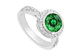 Frosted Emerald and Diamond Halo Engagement Ring : 14K White Gold - 2.30 CT TGW Size 7.5