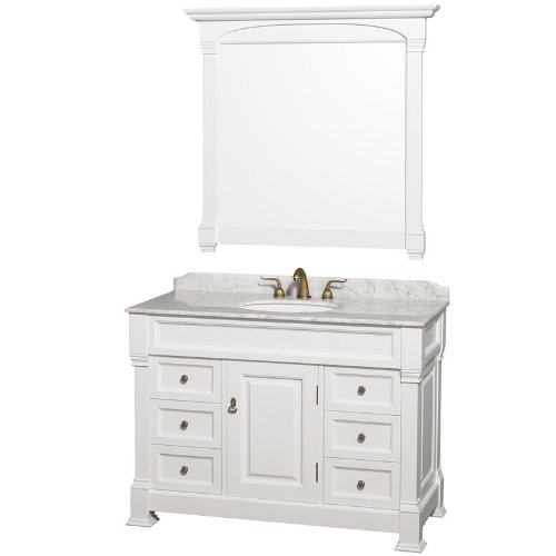 Wyndham Collection WC-TS48-White/Carrera White / Carrera Top Andover 48" Andover Floor-Standing Traditional Vanity Set - Includes Cabinet, Marble Top and Backsplash, Undermount Ceramic Sink, and Mirror WC-TS48![]()