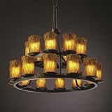 Justice Design GLA-8767-16-AMBR-MBLK-GU24 Dakota - Twenty-One Light Two Tier Ring Chandelier